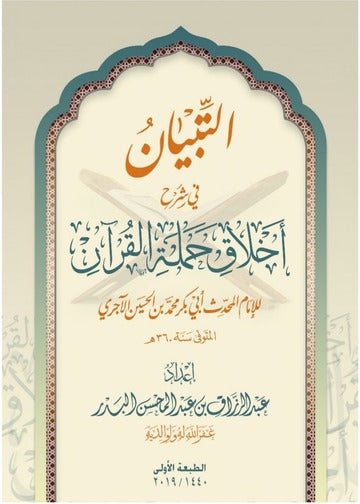 The book “Al-Tabyan fi Sharh Akhlaq Hamlet al-Quran” by Abu Bakr al-Ajurri is considered one of the valuable books for researchers in Quranic sciences in particular and others who specialize in Islamic sciences in general. It is published by the Itqan Office for Scientific Investigation and Studies. This is because the book “Al-Tabyan fi Sharh Akhlaq Hamlet al-Quran” by Abu Bakr al-Ajurri falls within the scope of studies in the sciences of the Holy Quran and the specializations related to them concerning the interpretation of the Noble Quran.