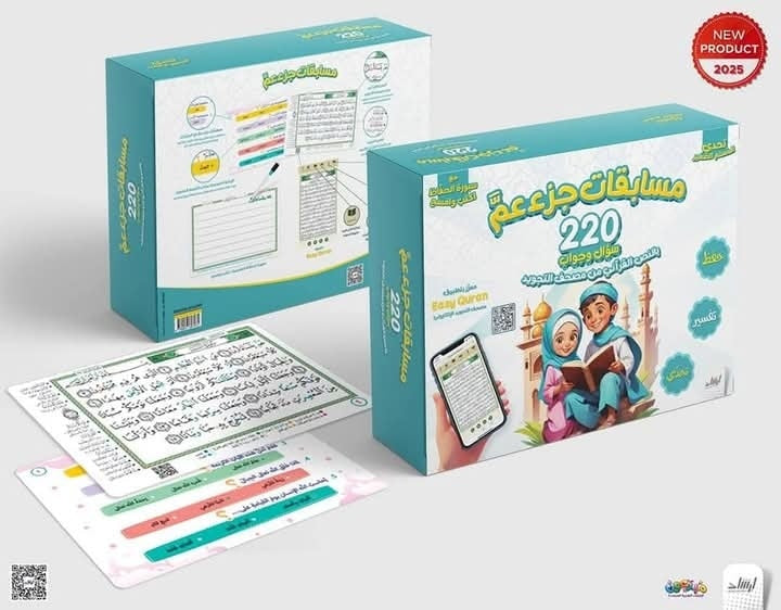 ✅ كل كارت عليه QR Code يوصّل الطفل مباشرة للتطبيق لتعلم التجويد وسماع التلاوة الصحيحة.