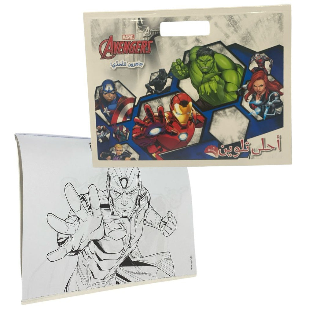 احْمِلوا مَعَكُمْ، أَينَما ذَهَبْتُمْ، أبطال الأفنجرز. اسْتَمتِعوا مَعَهم بِمُغامَرَةِ التَّلْوينِ وَالمُلْصَقاتِ الكَثيرَة!