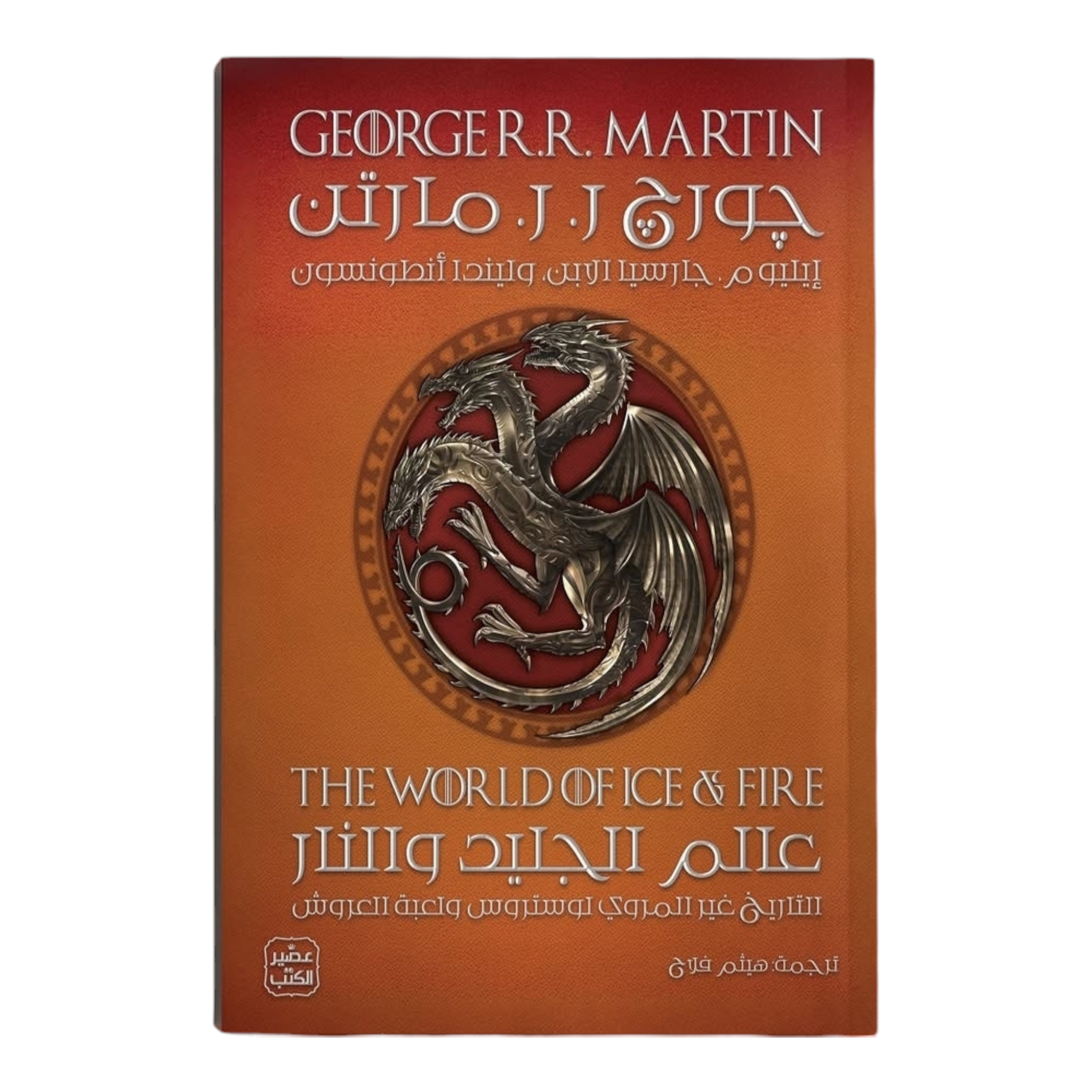 التاريخ الخفي الذي لم يُروَ من قبل لوستروس والأراضي البعيدة مع مئات الصفحات من المحتوى الجديد. تحفة چورج ر. ر. مارتن الملحمية لعبة العروش - والتي تُعد من أكثر الأعمال الخيالية ابتكارًا وتشويقًا في عصرنا - تستحق مقدمة تليق بعظمتها. وأخيرًا، جاء ذلك مع إصدار ""عالم الجليد والنار"". هذا المجلد الفاخر والمزدان بأكثر من 170 قطعة فنية أصلية ملوَّنة بالكامل، يشكل موسوعة شاملة لتاريخ الممالك السَّبع، ويسرد بإبداع مشاهد المعارك الكبرى، والمنافسات الشرسة، والتمردات الجريئة التي قادت إلى الأحداث الحاسمة في أغنية الجليد والنار ومسلسل لعبة العروش الذي أسر الملايين حول العالم. في تعاون استمر لسنوات، اجتمع مارتن مع إيليو م. جارسيا الابن وليندا أنطونسون، مؤسِّسا موقع Westeros.org الشهير - وهما من الأشخاص القلائل الذين يعرفون هذا العالم الغني بتفاصيله كما يعرفه مبدعه. يجمع هذا الكتاب بين الحقائق والتكهنات العلمية والحكايات الشعبية المنقولة عبر الأجيال، من المِايسترات والحكماء والسِّپتونات والسَّحرة. يمتد السرد من عصر الفجر إلى عصر الأبطال؛ ومن مجيء البشر الأوائل إلى وصول إجون الفاتح، ومن تأسيسه للعرش الحديدي إلى تمرد روبرت وسقوط الملك المجنون إيرس تارجاريَن الثاني، الذي أطلق شرارة الصراعات الملحمية بين آل ستارك، ولانستر، وباراثيون، وتارجاريَن. ""عالم الجليد والنار"" هو الرفيق المثالي لعشاق هذا العالم الرائع، وهو دليل حيٌّ على أن القلم أقوى من عاصفة السيوف. الآن، استعد للغوص في صفحات هذا العالم الغني بالتفاصيل، حيث الأساطير تحيا والصراعات تتجدد، وتُكشف الأسرار التي لم تُروَ من قبل
