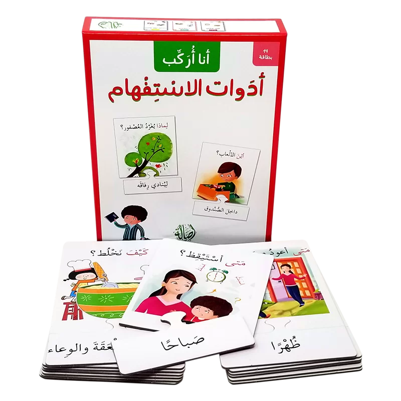 ـــ تُقرَأ القصّة المناسِبة للمفهوم، ثمّ نضع أمام الطّفل الكلمات الموجودة على الأجزاء الأخرى، وعليه إيجاد الكلمة المناسِبة وتركيبها.