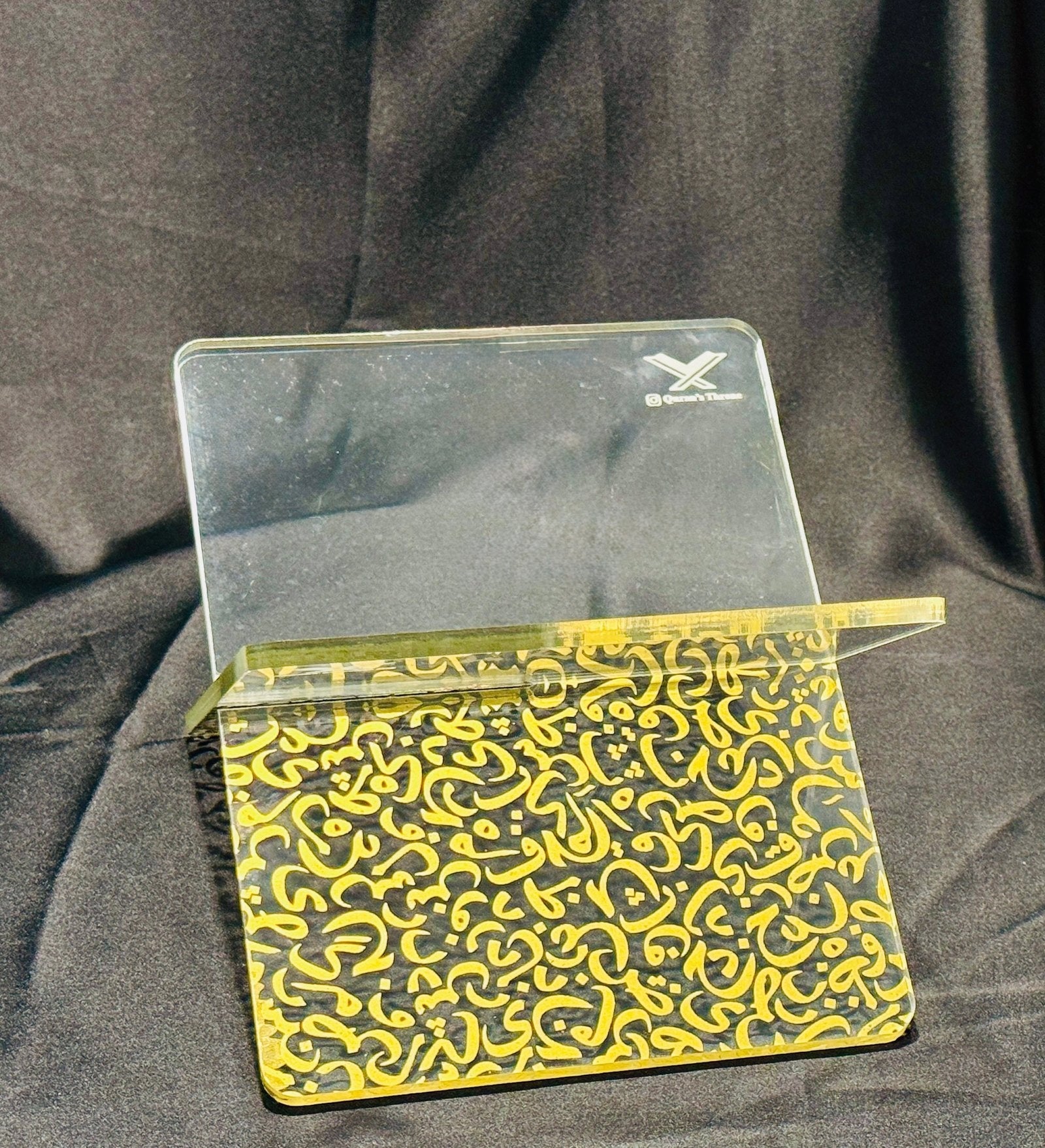 حامل المصحف الشفاف المصنوع من الأكريليك (الرحال) والمزين بحروف عربية مطبوعة بالذهب، يجمع بين الأناقة والعملية. مصنوع من أكريليك شفاف عالي الجودة بسماكة 8 مم، مما يمنحه متانة فائقة مع الحفاظ على مظهر عصري أنيق.