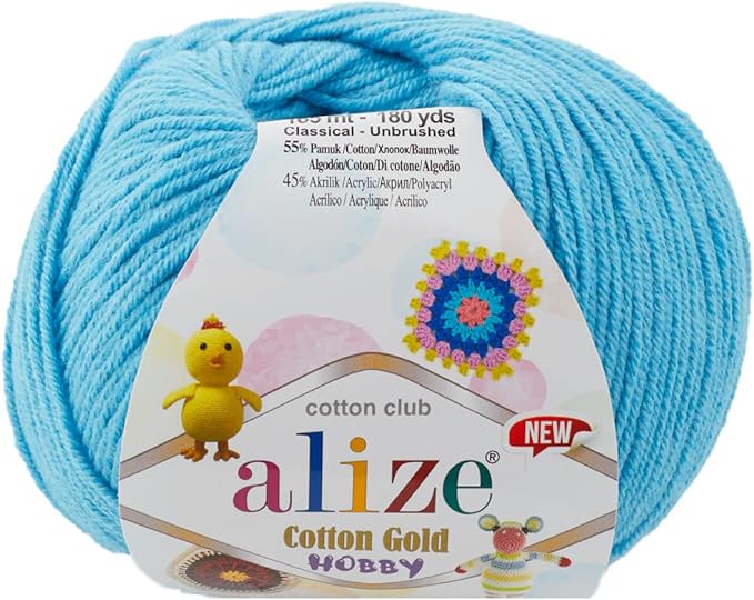 خيط أليز كوتون جولد هوبي الجديد للحياكة اليدوية، كروشيه، أميجورومي، اصنعها بنفسك، ملابس أطفال، أوشحة، شالات، سترات، كنزات، قبعات، سترات، بطانيات، زينة، منسوجات منزلية، إلخ.